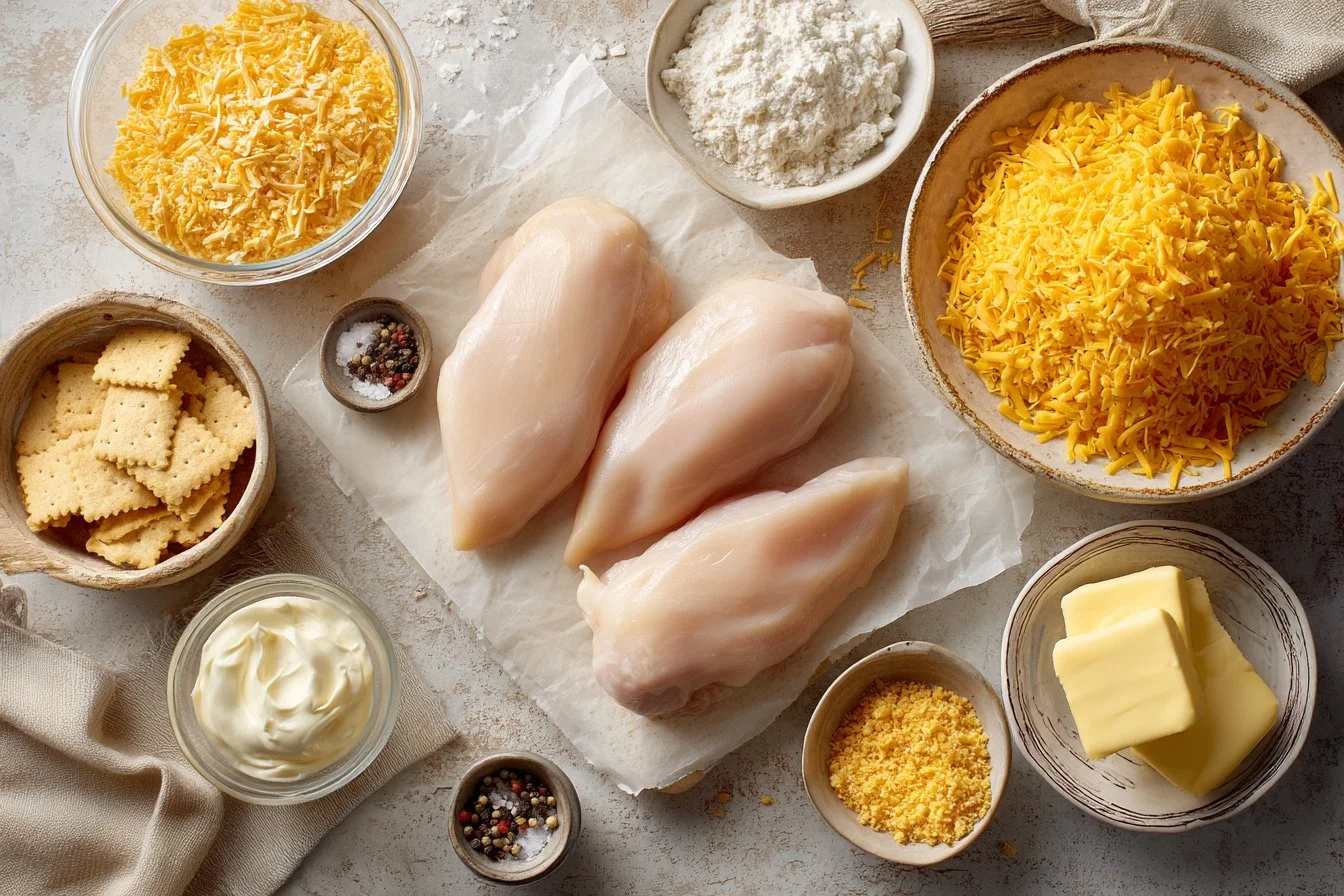 The kitchen smells like butter and warm cheddar. First, the Ritz crumbs crack under my fingers; then I hear the soft sizzle as the coating meets the hot pan of oven air. This Crispy Cheddar Chicken always takes me back to Sunday dinners. Also, it cooks fast and makes the whole house feel like home. If you love crunchy coatings, try a lighter twist with these air-fryer mozzarella chicken wraps for a weeknight switch.