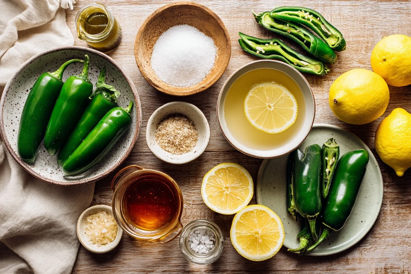 Homemade jalapeño lemon honey jam in a mason jar with fresh ingredients