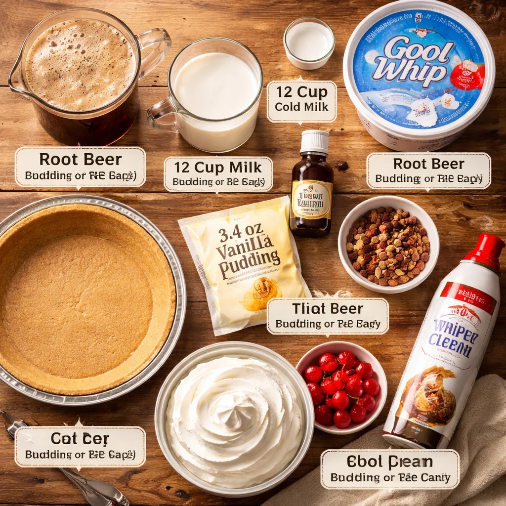 - Before serving, let the pie sit at room temperature for 5–10 minutes so it softens slightly. Garnish each slice with whipped cream, a cherry, and optional crushed root beer candy.