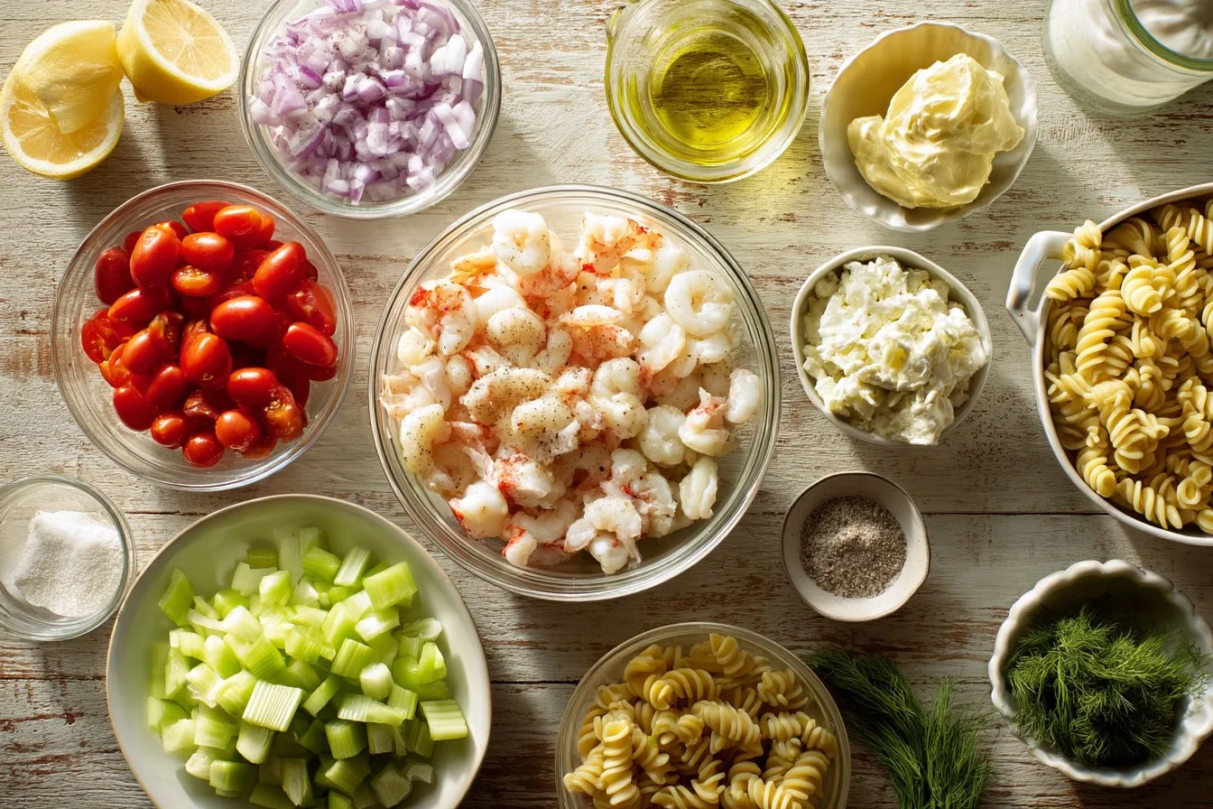 A light and creamy seafood pasta salad with a bright lemon kick, perfect for casual dinners and potlucks.