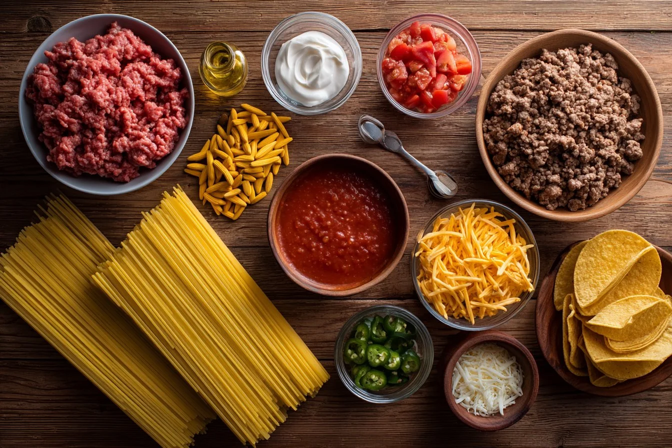 I still remember the steam and the taco-shell crackle when this hit the table — warm, cheesy, and a little silly in the best way. Spaghetti Tacos Ground Beef mixes two favorites into one honest family meal, and it smells like a weeknight that turned into a celebration. This always takes me back to Sunday dinners. Also, if you love saucy pasta with a crunch, try this riff after my quick creamy Cajun beef spaghetti for more comfort-style pasta.